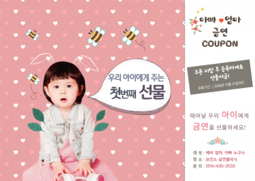 김천시보건소 건강증진과장은 “보건소를 방문하는 임산부와 가임기 부부가 등록권을 통해 태아 건강의 중요성을 다시 한번 인식하는 계기가 되기를 바란다.”라며, “태어날 아이에게 금연을 선물한다는 마음으로 보건소 금연클리닉을 적극적으로 활용해 주시길 바란다.”라고 말했다.