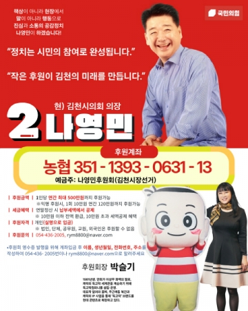 나영민 후보는 이번 인선에 대해 이는 단순한 후원회 구성이 아니라 김천이 가진 문화자산을 도시 브랜드로 확장하는 선언이라며
