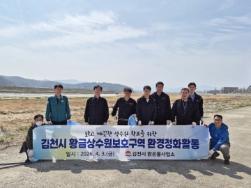 김천시 맑은물사업소에서는(소장 전대훈) 4월 3일 황금 상수원보호구역 일대에서 환경정화 활동을 진행했다고 밝혔다.